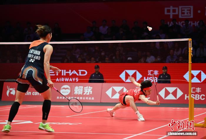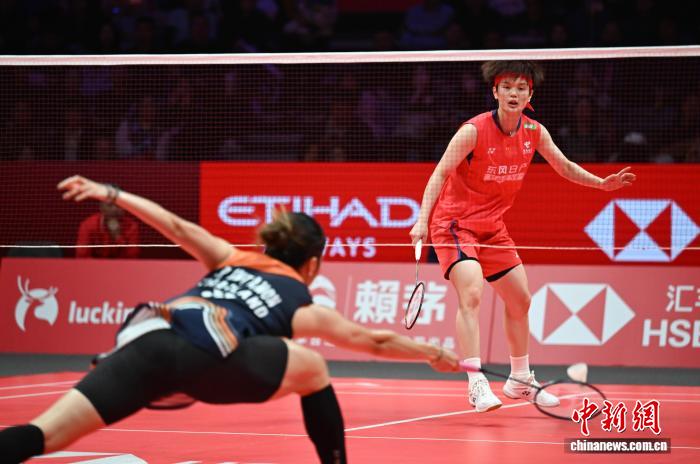 12月20日,2025寰球羽联寰球巡行赛总绝赛正在浙江杭州奥体重心体育馆举办,女单半绝赛中,中原选脚王祉怡(白衣)2比1打败泰邦选脚果达农,将取韩邦选脚安洗莹抢夺女单冠军。中新社记者 王刚刚 摄