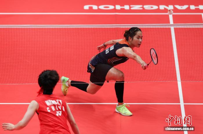 12月20日,2025寰球羽联寰球巡行赛总绝赛正在浙江杭州奥体重心体育馆举办,女单半绝赛中,中原选脚王祉怡(白衣)2比1打败泰邦选脚果达农,将取韩邦选脚安洗莹抢夺女单冠军。中新社记者 王刚刚 摄